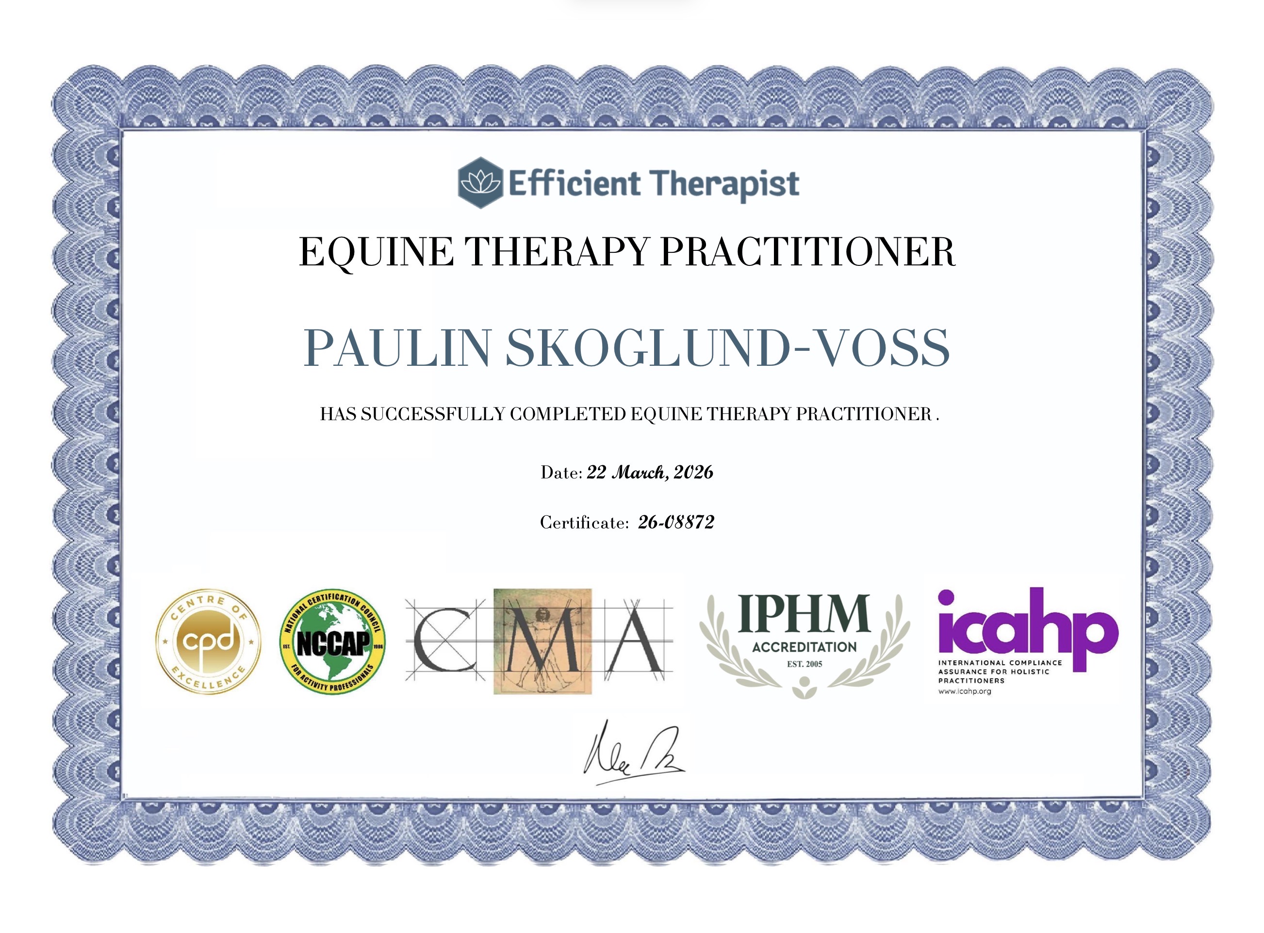 «Jeg har hatt egen hest i mere enn 10 år og jeg har alltid sagt at å drive med hest er min form for meditasjon i en hektisk hverdag som musiker, artist og pedagog. Jeg har alltid jobbet etter metoden «Horsemanship» med fokus på belønning og samarbeid med hesten. Som musiker og artist har jeg de siste årene jobbet mye med en kombinasjon av «Musikk og Mindfulness» der publikum ligger på matter og gjør enkle avspenningsøvelser. Nå har jeg tatt et steg videre med heste assistert terapi.» Paulin Voss